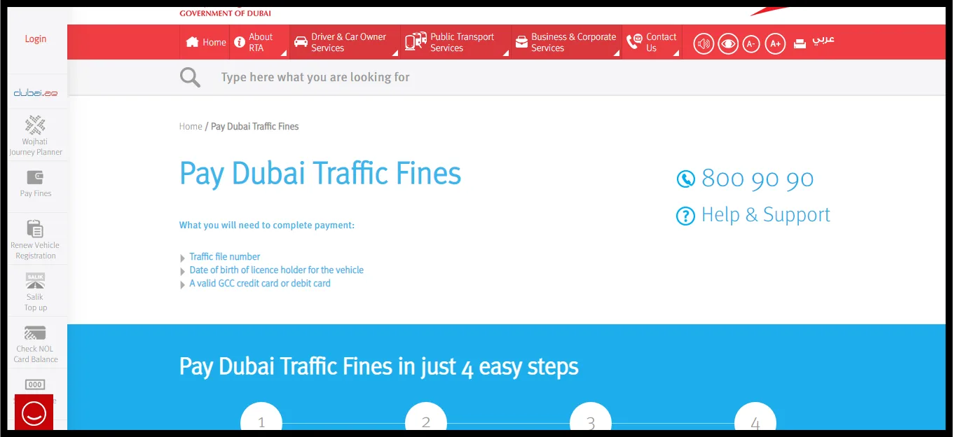 - Step 2: Select “Traffic Services” from the menu, then click “Fines Inquiry and Payment.”